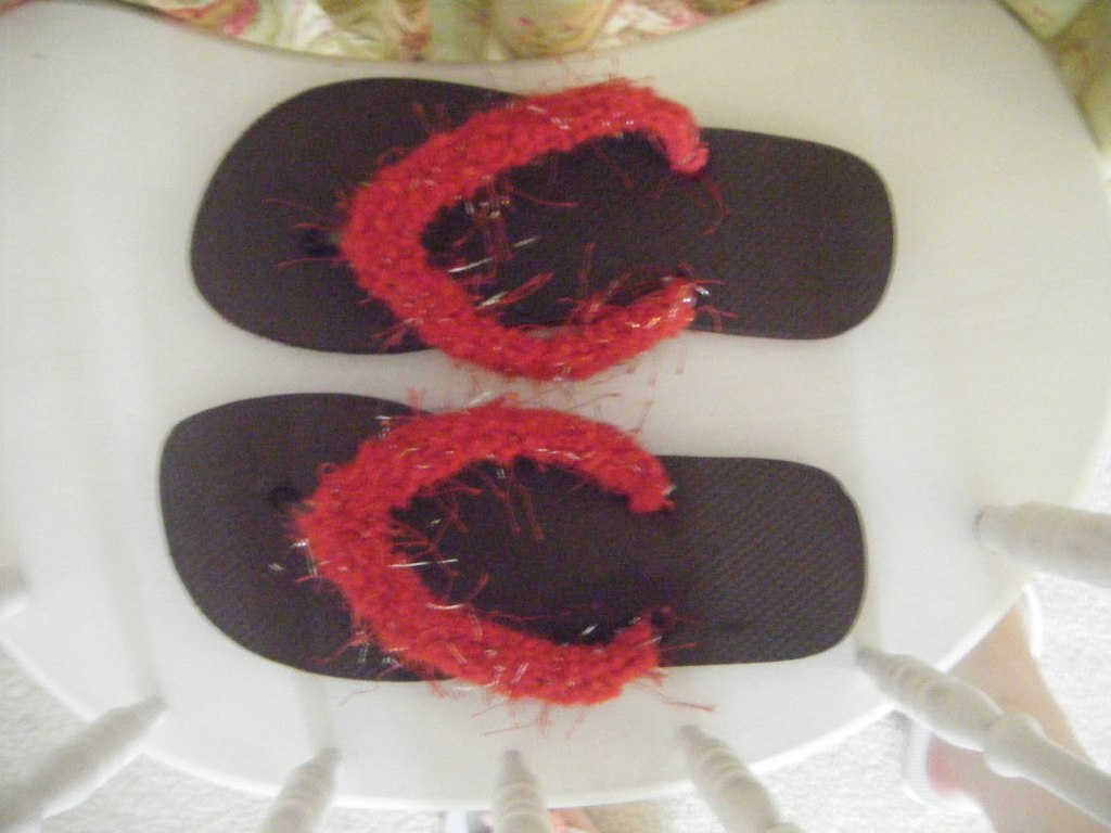 Weave tails in. If made for Switch Flops, glue Velcro on the back. If made for regular flip flops, just glue it on.