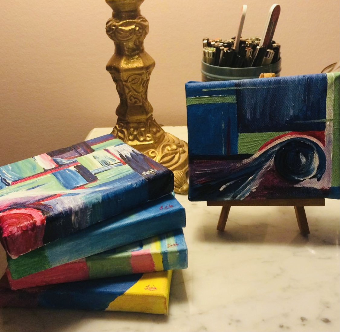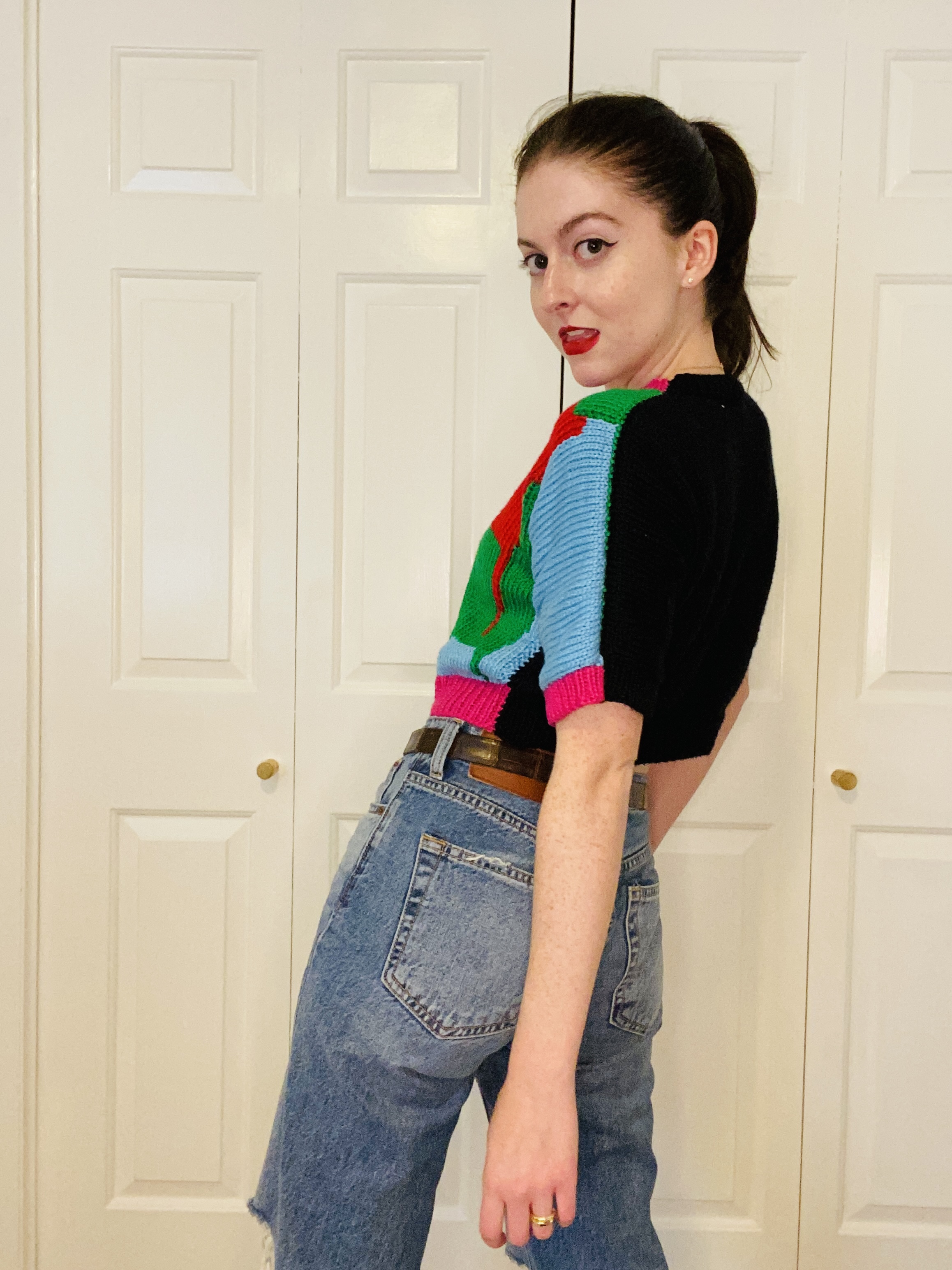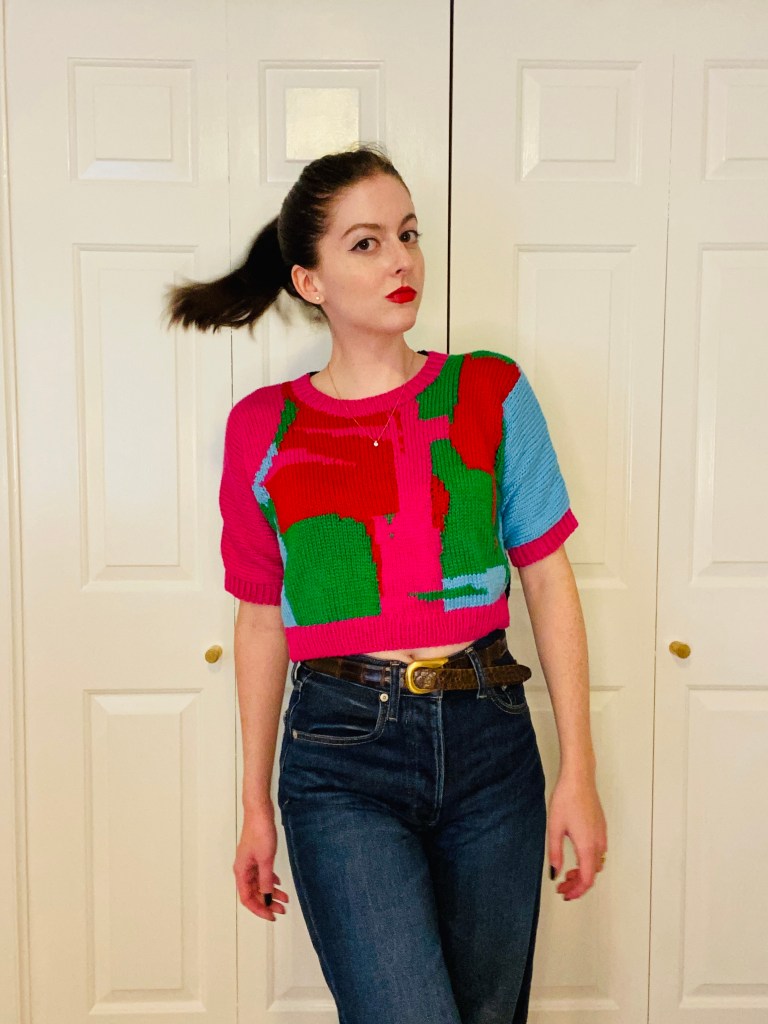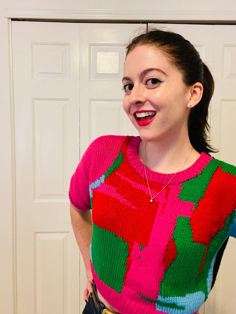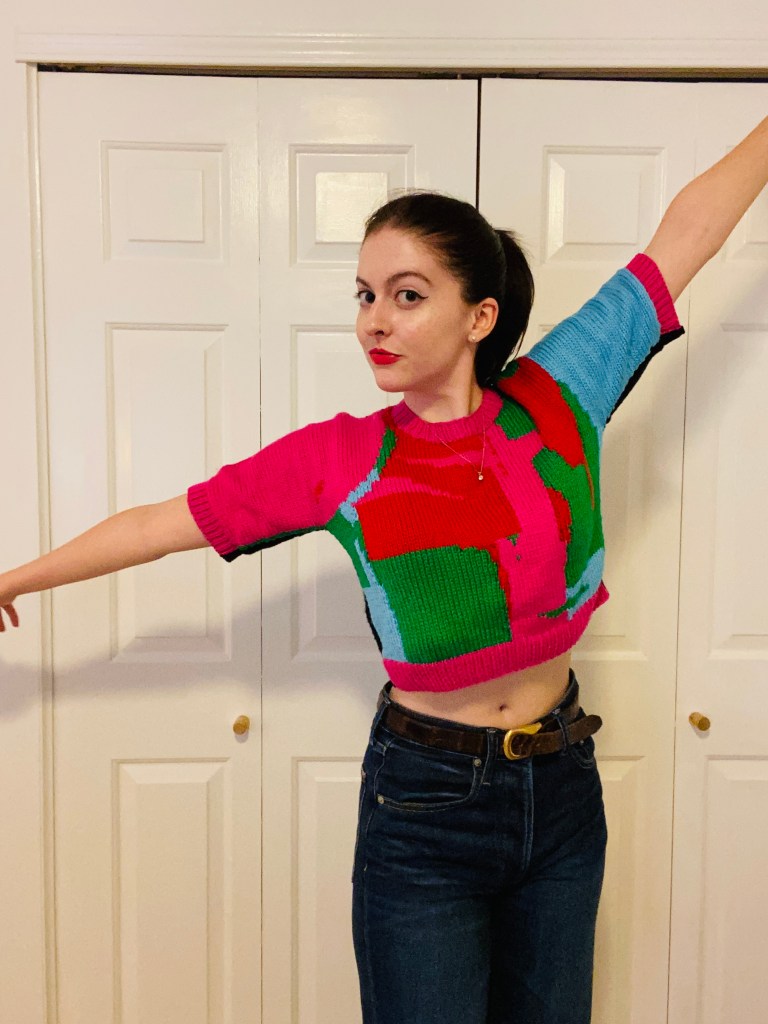I didn’t study much my senior year in college. Instead, I spent a solid chunk of my time painting abstracts with tiny brushes on five inch squares of canvas. I see painting now as a form of meditation – clearing my thoughts to focus on swirls of complementary color. But back then, as my rickety six inch greeting card easel toppled face down – wet paint meeting marble-slab-desk over and over – it may have been closer to non-threatening mania. At some point in between brush strokes and handfuls of sour patch kids, I opened an excel spreadsheet, and mapped out an abstract color work pattern. I thought about knitting a t-shirt, or a blanket, or a pillow like the painted ones my parents kept in their foyer, and then I did nothing.