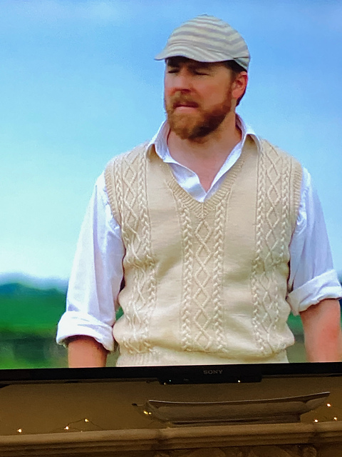 Mom’s been watching the remake of All Creatures Great and Small and asked me for another vest by texting me this picture of Siegfried: